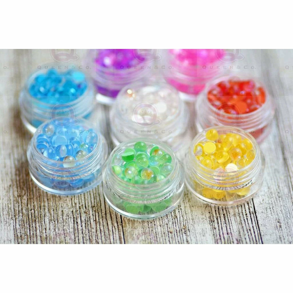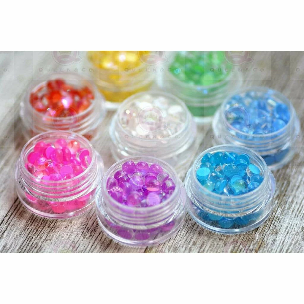 Adorable set of jelly back stones perfect for embellishments or shaker toppings! Set includes 8 containers filled with approximately 45 stones each. Containers measure 1″.