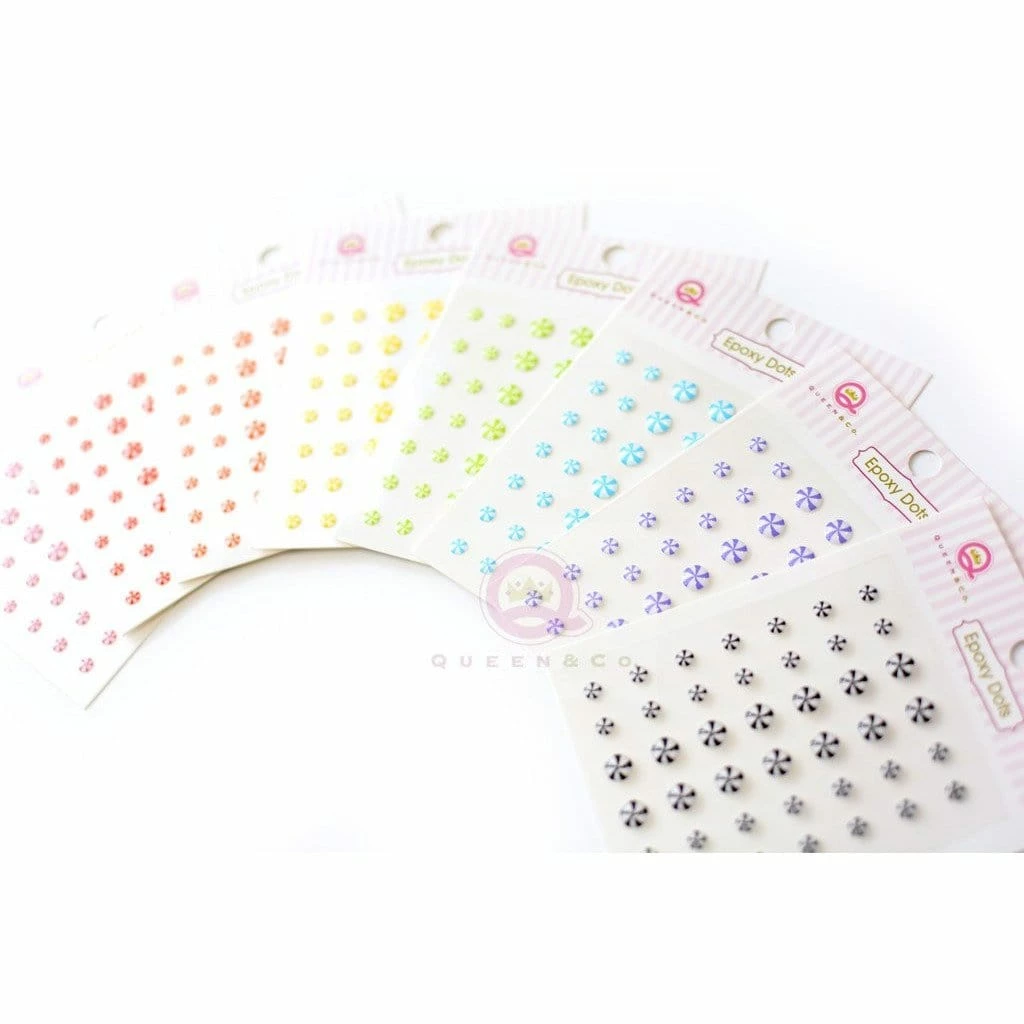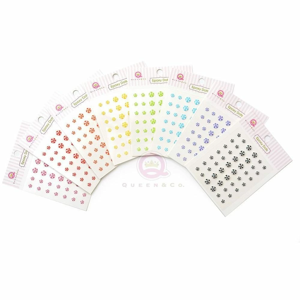 Includes 8 colors of our Epoxy Dot swirl stones. Each card includes epoxy dots in 2 sizes (4mm/6mm), 42 pieces per card.