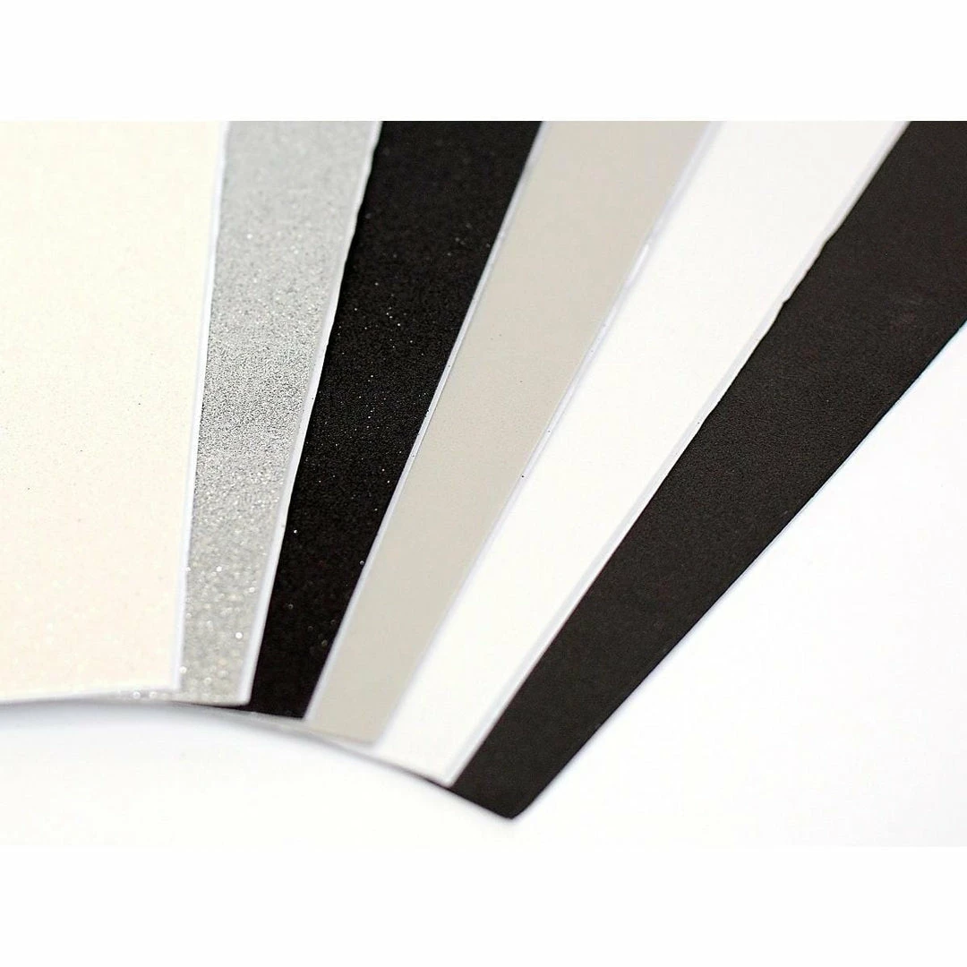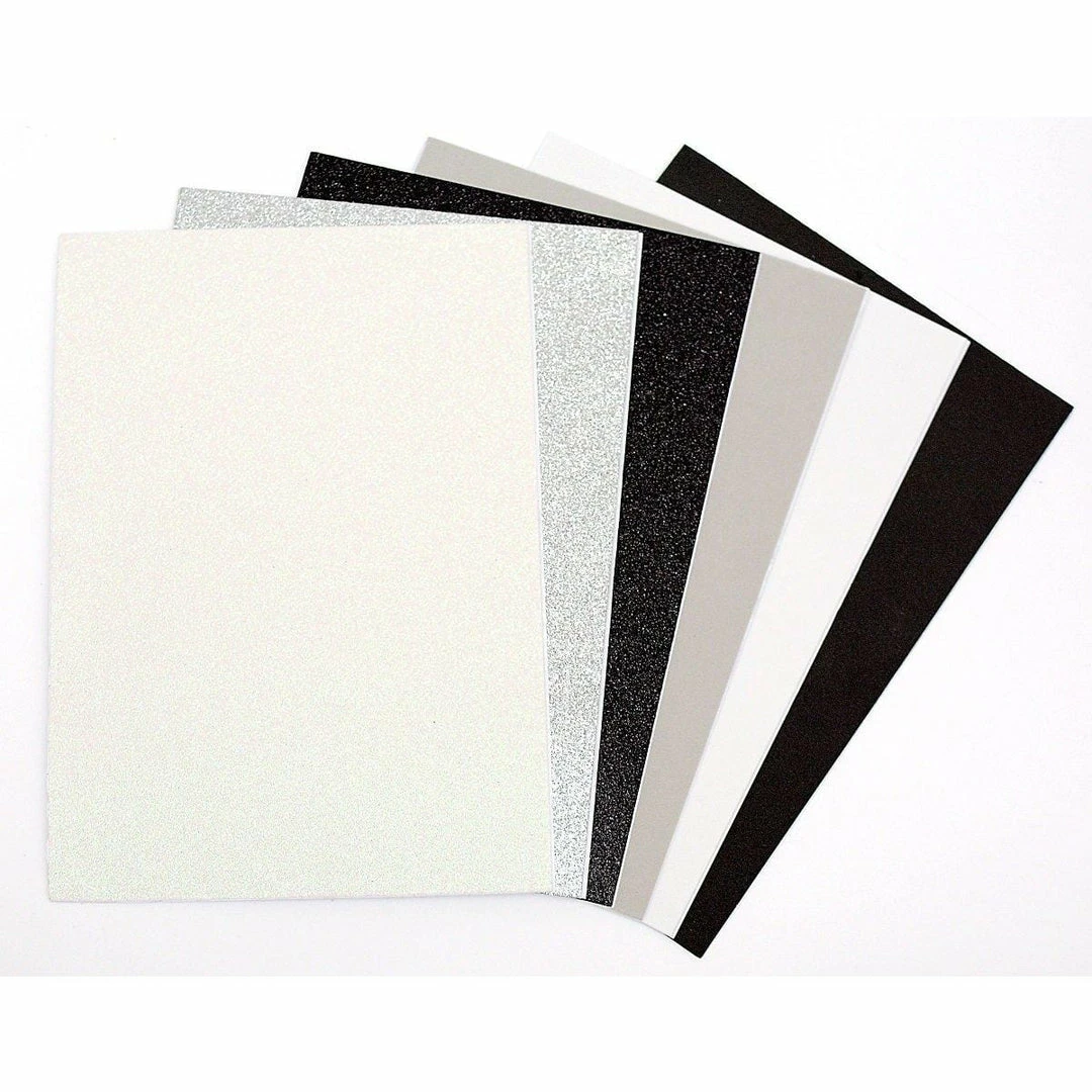 Add dimension to your cards and layouts with our new fun foam. Works perfectly with our new Foundation and Sentiment Stacker Dies. These sheets are made with high quality glitter with minimal flaking, and they cut perfectly with our dies. Package includes 6 sheets of 8.5×11 foam with adhesive on the back side. 3 sheets of Grey, Black, White and 3 sheets of Glitter Gray, Black and White.