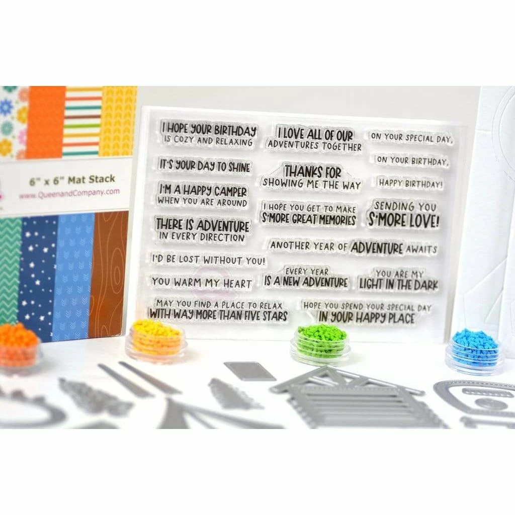 Kit includes 28 steel dies, 21 foam / acetate shakers, 6×6 paper pad, 4×6 stamp set and 7 toppings.