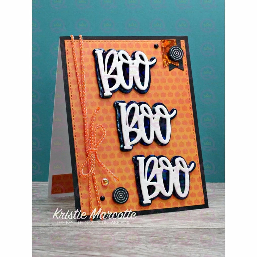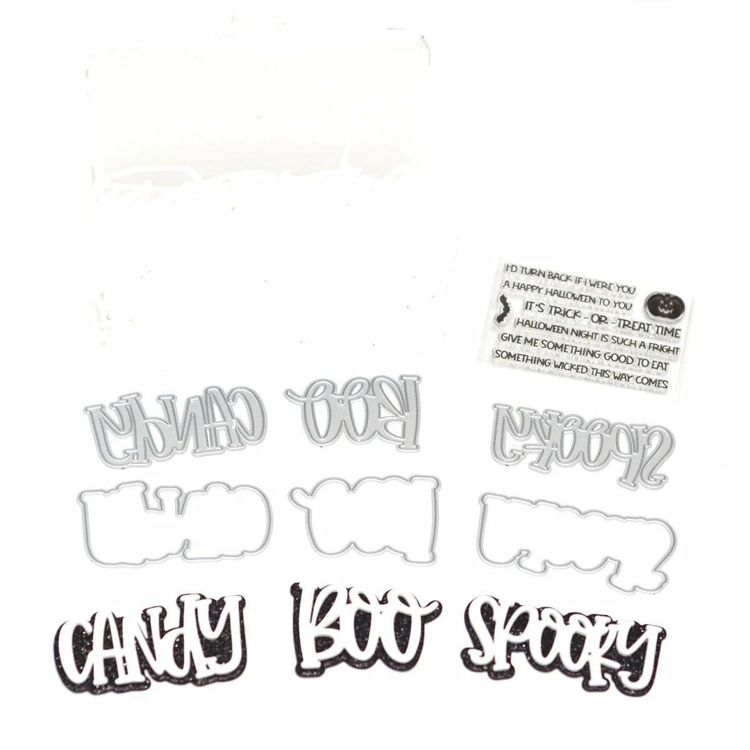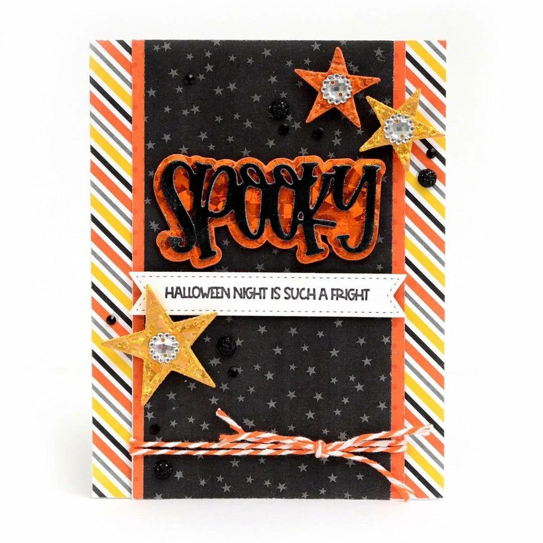 Set includes 3 word dies, 3 word outline dies and 2×3 stamp set. This set was updated in 2020. Dies measure 2.5″ x 1.25″. Boo is 2″ x 1.25″. We recommend pairing this set with our Fun Foam for dimension. Paper pads used in the samples can be found here by clicking here.
