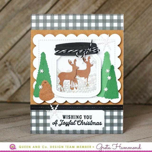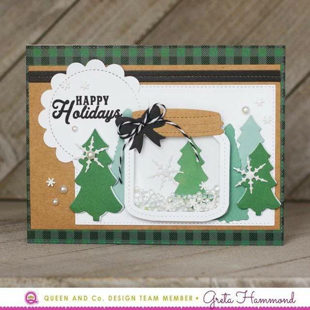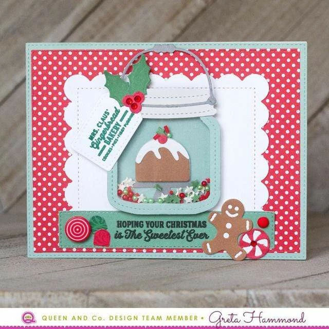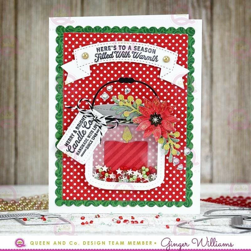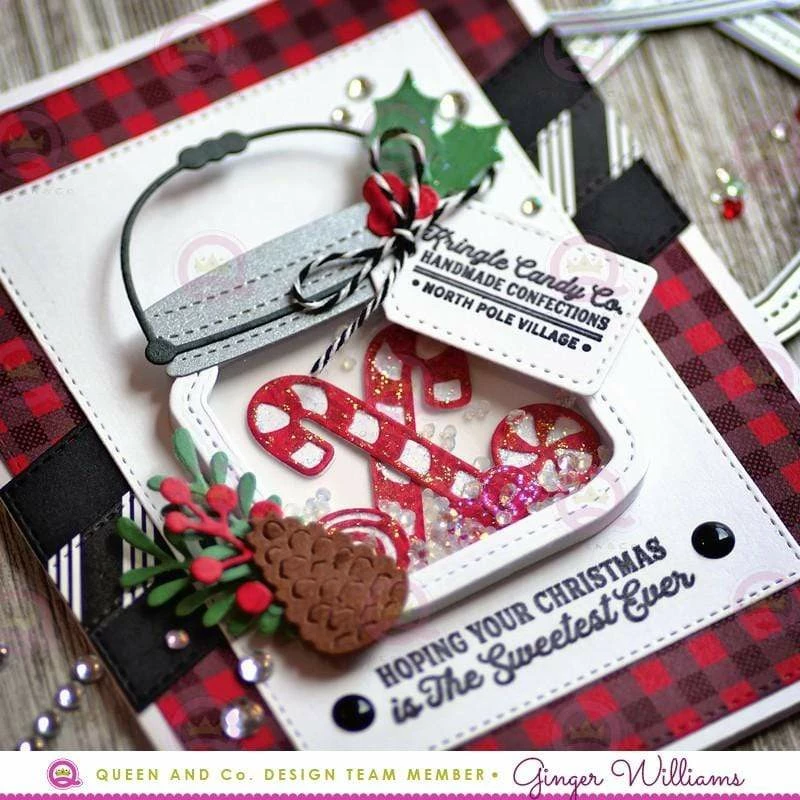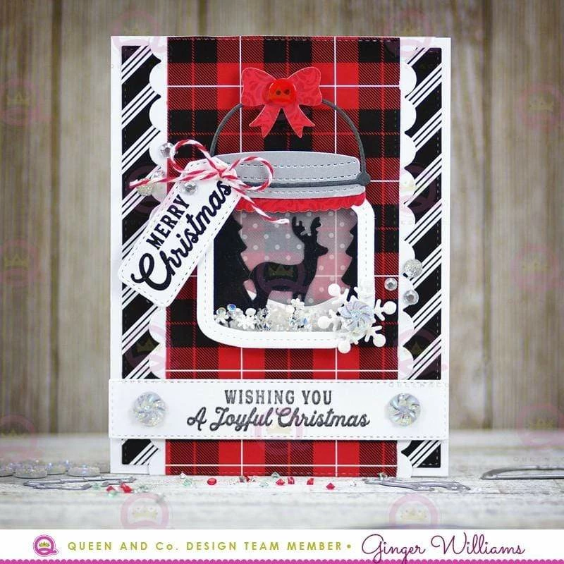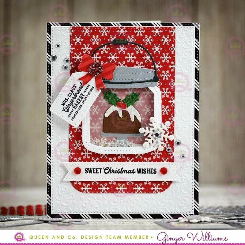 Kit includes 44 steel dies, 6×6 patterned paper pad, 4×6 clear stamp set, 9 foam/acetate shakers and 6 toppings. Christmas in July Special – outline die included in the kit! New jar size measures approximately 2.25 x 2.25.