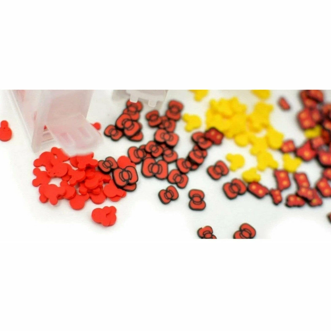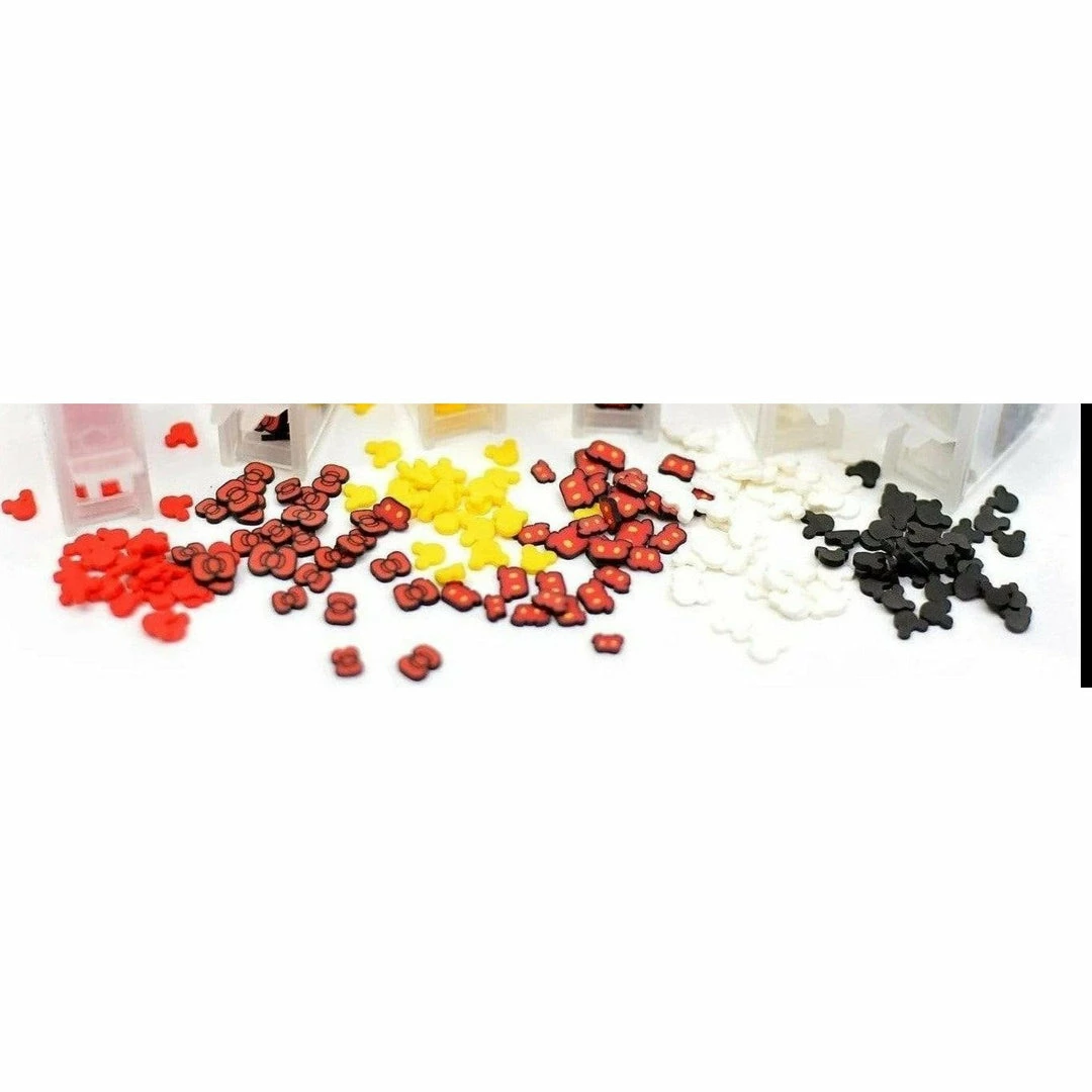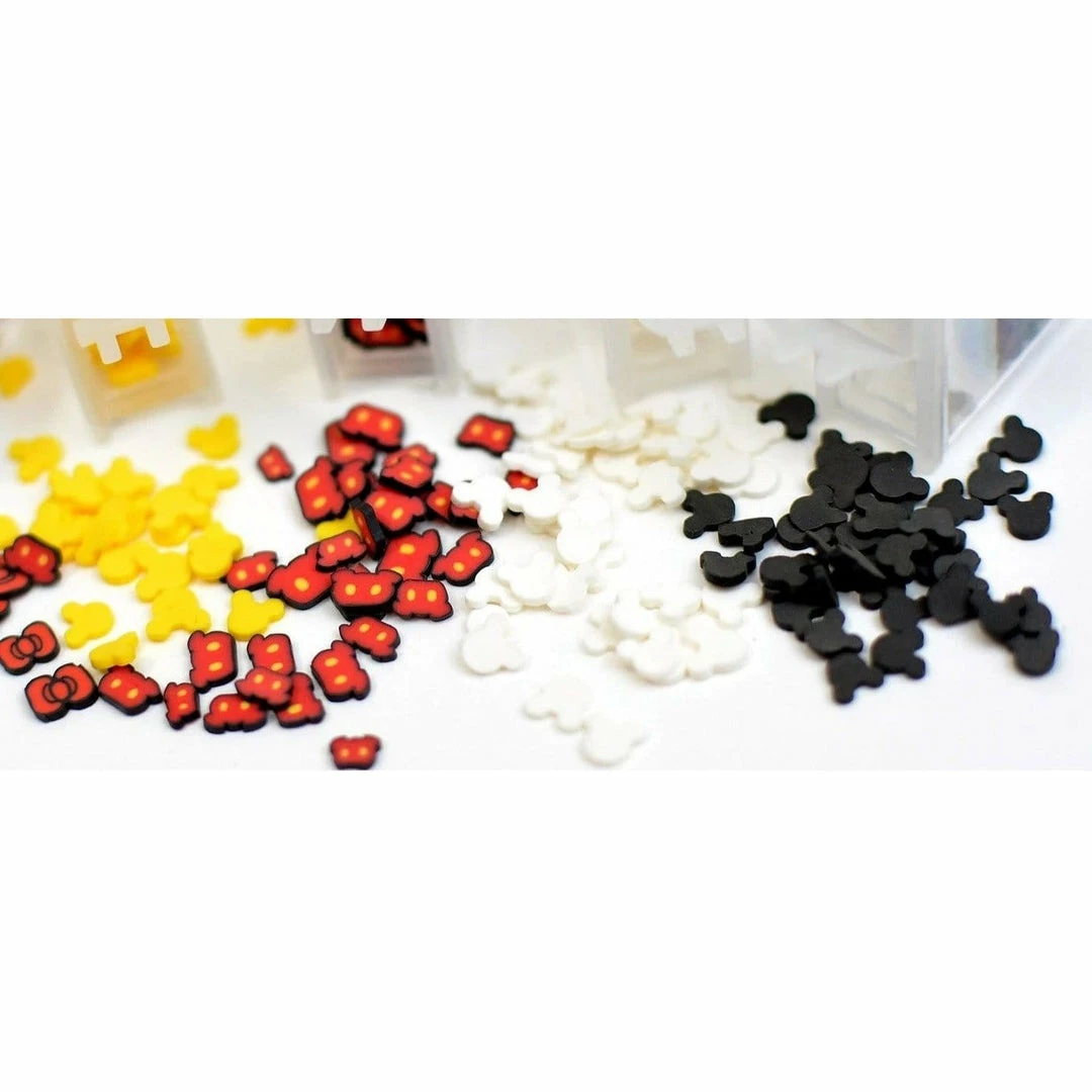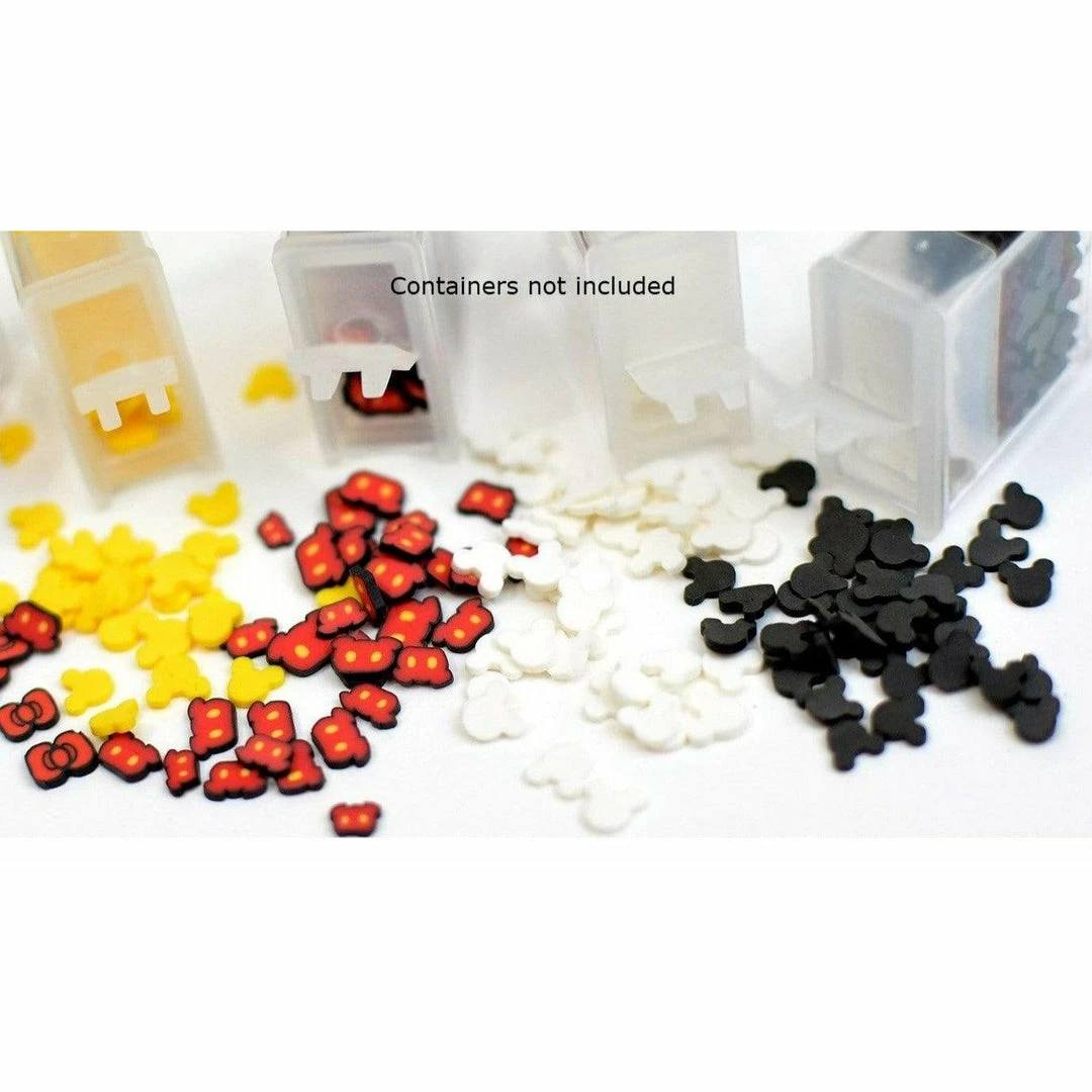 Adorable new Magic toppings mixture. Shapes include: Mouse Black, Mouse Red, Mouse Yellow, Mouse White, Pants and Bow. Includes 1/2 tablespoon of mixed shapes. Containers not included.