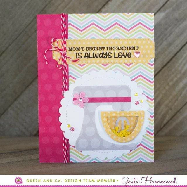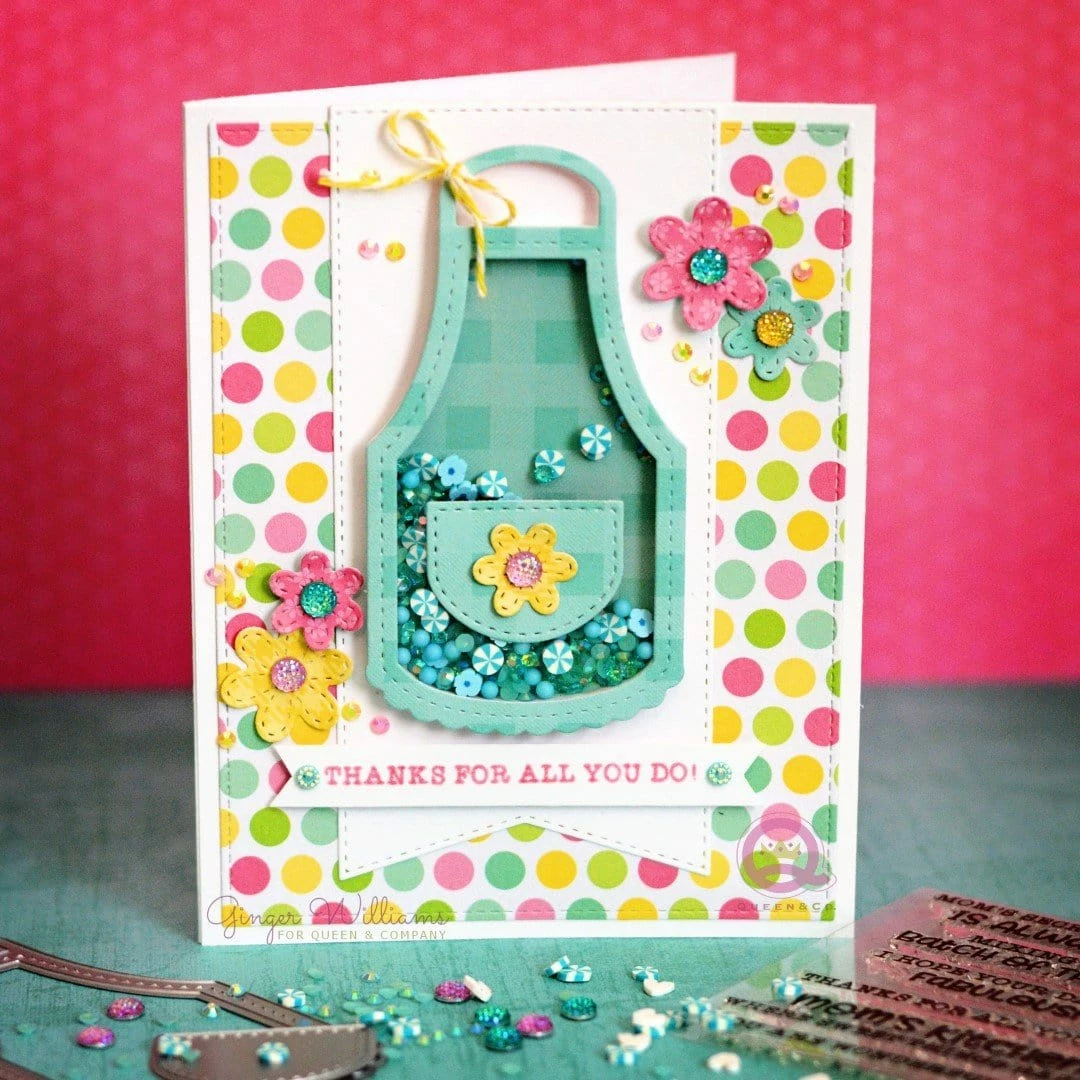This adorable shaped shaker set is just in time for Mothers Day! Craft cute shaker apron, purse, mixer and Mom sentiment. Kit includes 7 dies, 3×4 stamps and 12 foam / acetate shakers.