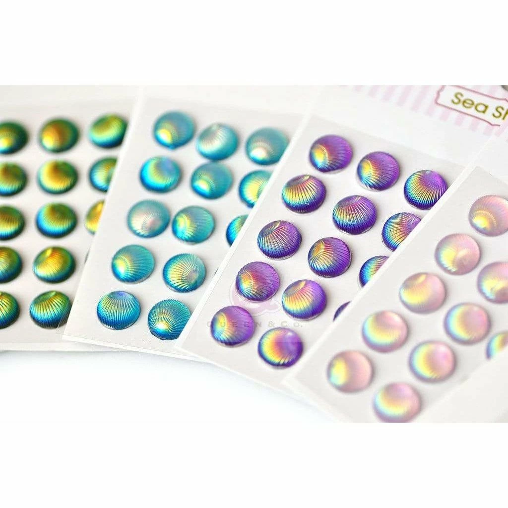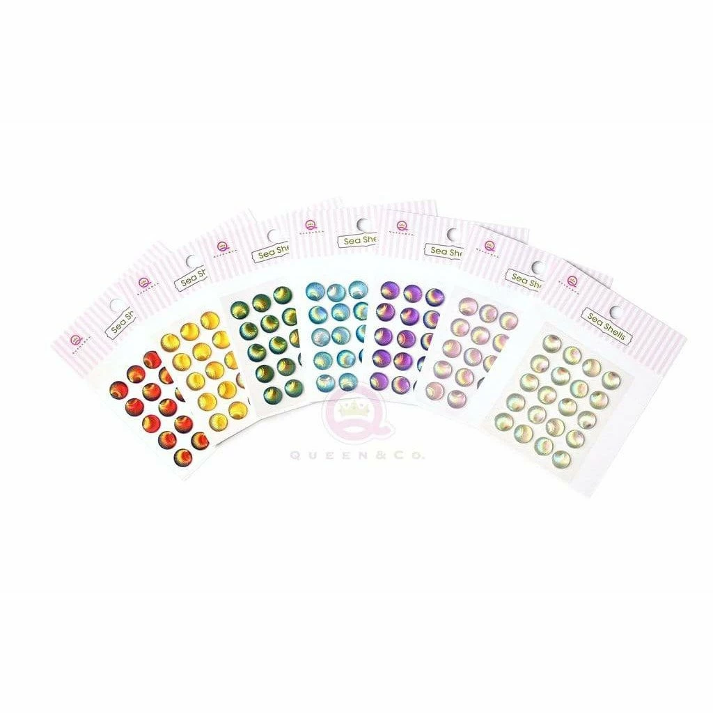 Bundle includes 7 colors of self adhesive seashells. 20 per card.