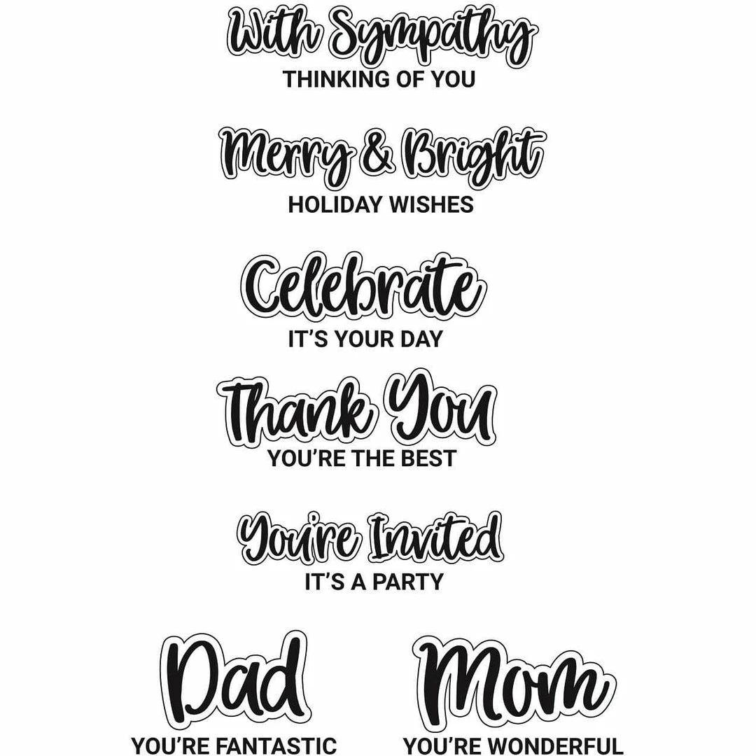 Stack your sentiments with these fun new dies. Designed to layer a words and backgrounds to create dimensional sentiments that are perfect for cards and layouts. These pair perfectly with our new Foundations dies and Fun Foam. Set includes 24 dies plus sentiment stamp set.