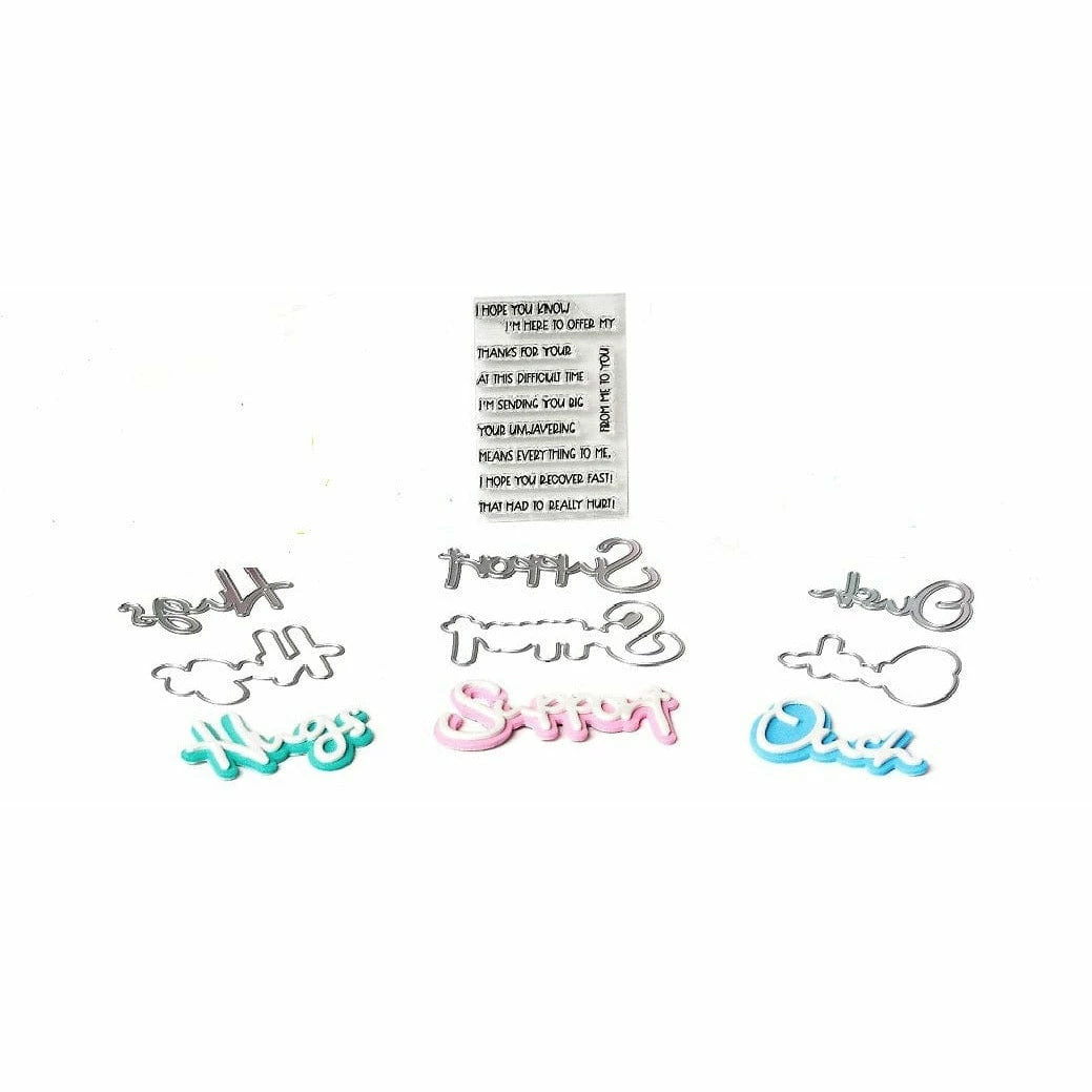 Includes 3 word dies, 3 outline dies and 2×3 stamp set. This set has been updated in 2022 to not include paper.
