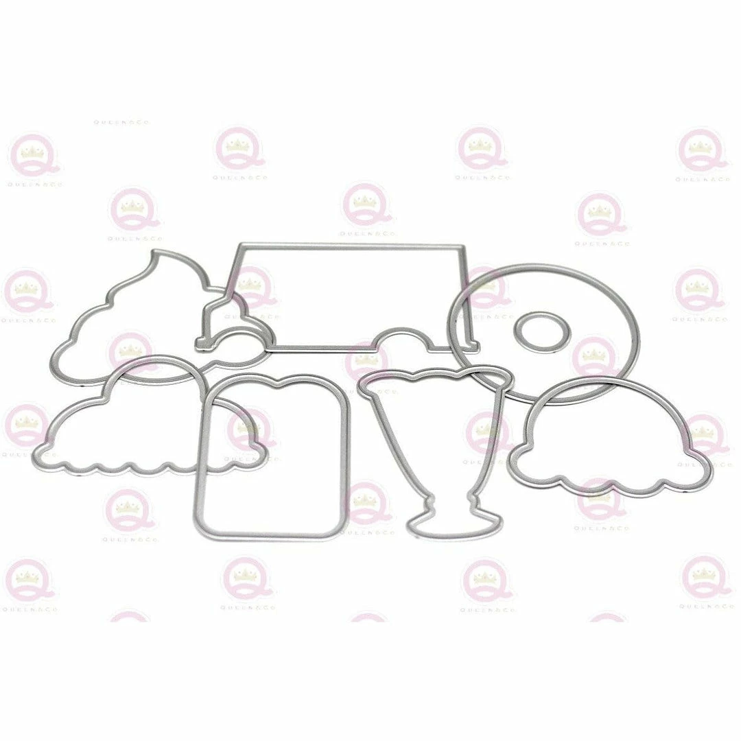 Includes 8 outline dies for the Sweet Shop kit. Outline dies are used to cut additional acetate covers or backgrounds for the shaker shapes in our Sweet Shop Kit.
