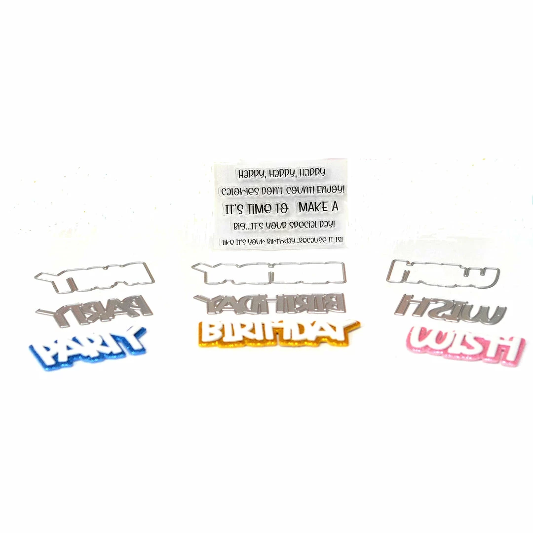 Includes 3 word dies, 3 outline dies plus plus 2×3 clear stamp set. We highly recommend adding our fun foam to these for added dimension. This kit no longer includes paper pads.